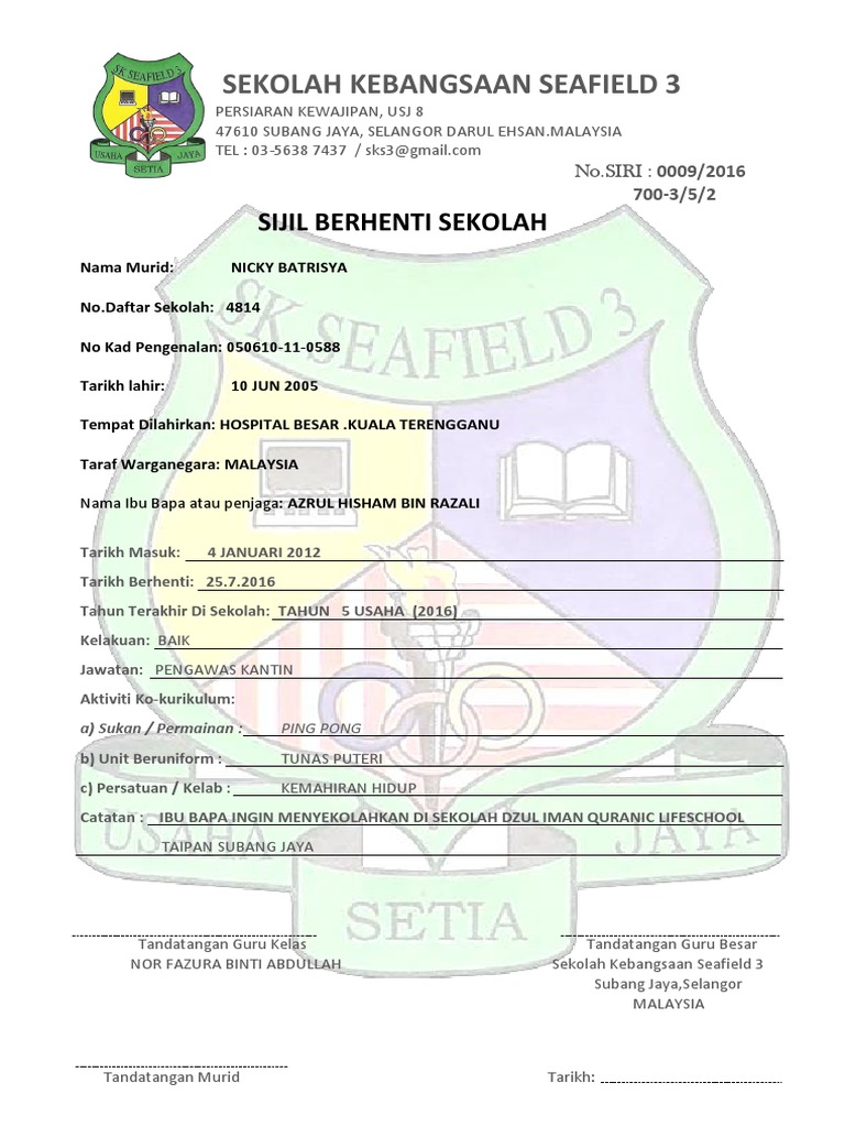 Draf Sijil Berhenti Sekolah Pdf